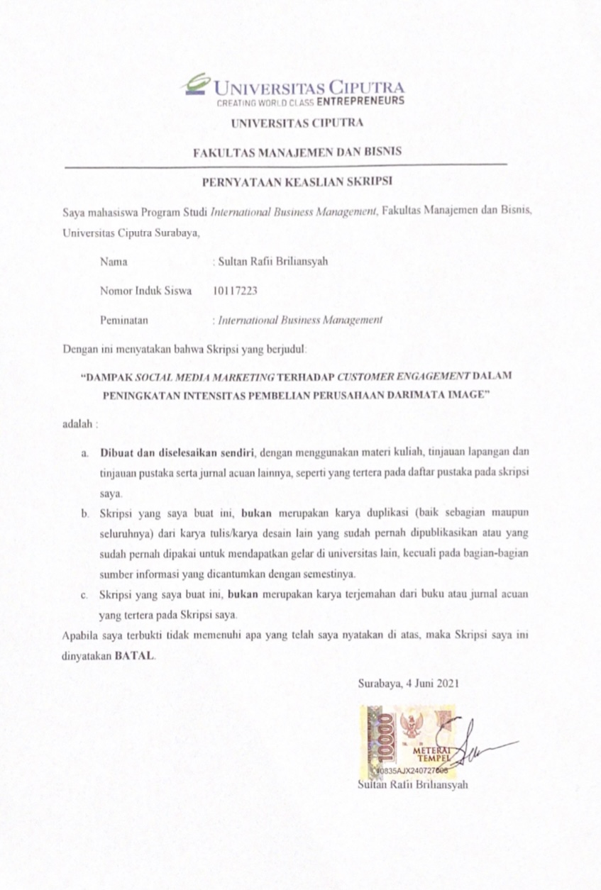 DAMPAK SOCIAL MEDIA MARKETING TERHADAP CUSTOMER ENGAGEMENT DALAM PENINGKATAN INTENSITAS PEMBELIAN PERUSAHAAN PEMBELIAN PERUSAHAAN DARIMATA IMAGE