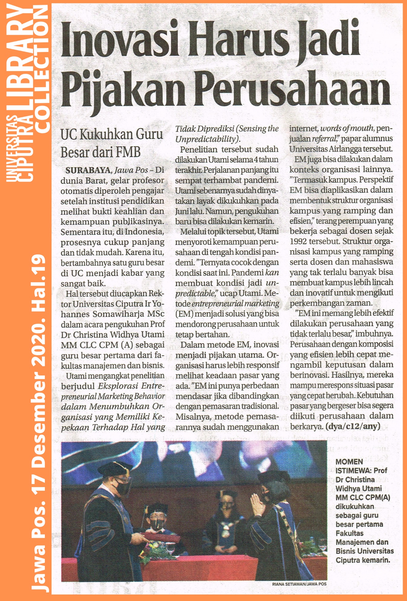SURABAYA, Jawa Pos – Di dunia Barat, gelar profesor otomatis diperoleh pengajar setelah institusi pendidikan melihat bukti keahlian dan kemampuan pubJikasinya. Sementara itu, di Indonesia, prosesnya cukup panjang dan tidak mudah. Karena itu, bertambahnya satu guru besar di UC menjadi kabar yang sangat baik.