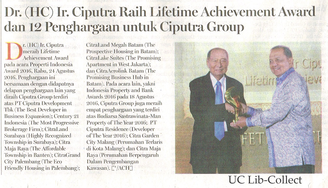 Dr,(HC) Ir. Ciputra Raih Lifetime Achievement Award dan 12 Penghargaan untuk Ciputra Group (406.1Kb)