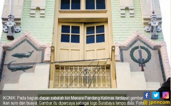 Padahal bangunan ini dibangun bukan oleh orang pribumi. Ada cerita menarik tentang itu. Dua hewan khas lambang Kota Pahlawan itu posisinya berada di bagian depan menara pandang. Tepatnya bagian depan sebelah kiri bangunan tua itu. Posisinya sangat mencolok, namun jika dilihat dari kejauhan tidak seperti gambar ikan suro dan buaya. “Iya memang ini bangunan kuno Belanda dan untuk menandakan bahwa ini adalah pelabuhan yang terletak di kota Surabaya. Oleh yang membanguan disisipi logo Surabaya, dengan menggambarkan ikan suro dan buaya,”, ujar Admin Surabaya Heritage, Chrisyandi kepada Radar Surabaya (Jawa Pos Group).